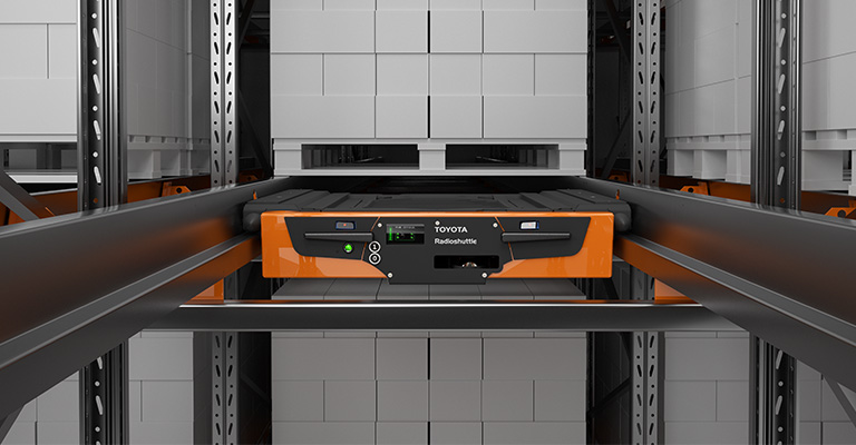 Saviez-vous que les navettes semi-automatisées comme la Toyota Radioshuttle sont une solution intelligente pour économiser de l'espace ? Au lieu de conduire jusqu'au rayonnage pour placer les palettes, les chauffeurs de chariot élévateur peuvent les déposer à l'entrée des rayonnages. Les navettes prennent le relais, amenant la palette à l'endroit désiré, pendant que le chauffeur est déjà en route vers la prochaine charge.